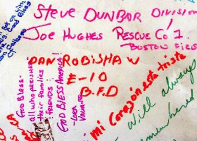 This was a very big and busy station. Once again it was near dinner time, and we were invited to join them. We brought in a few sections of the banner for them to sign. Their involvement in NYC was as we had expected it was. They had a very big part in 9/11, and very personal. Chief Dewan had lost his younger brother, he was on the FDNY.