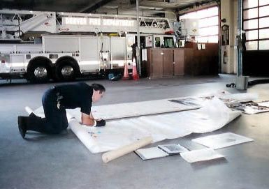 We sat together around a large dining table with coffee, and held conversation. Everyone was anxious to see and sign the banner. It was great to have so much help, as it was a lot of work now spreading out all the sections. It was definitely amazing to see it all laid out. I remembered when it was one section, 41 days and 24 states ago. I was welcome to stay at the FD, and I joined in on the usual fire department past times. It’s here where you can find some of the greatest Chefs, Car Washes, Laundry, and Pranksters!
