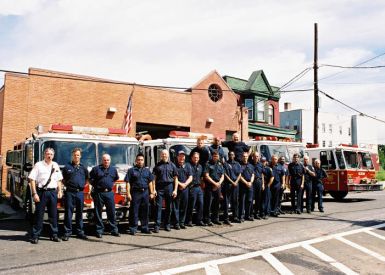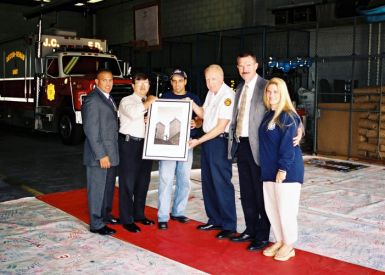 It had been planned for several weeks in advance that this would be an important visit with the banner, and a special presentation would take place. This FD is directly across the Hudson River, and facing NYC. This FD was directly involved with the rescue and recovery on 9/11.