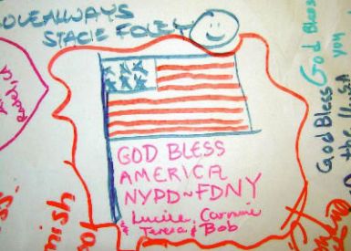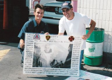 Over at the FD, we met our contacts, and planned to present the banner on the next morning along with full media coverage. Paige had also made prior contacts at the NY NY Hotel, for our accommodations for the next two nights. We were welcome to display the banner out front here, and it received an overwhelming response from all the visiting firefighters and tourists.