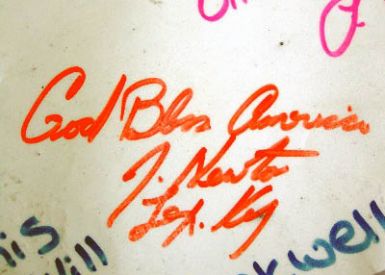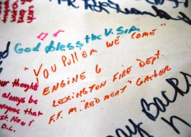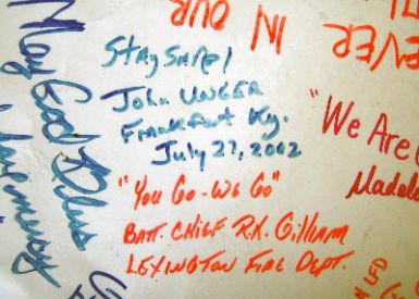 In the morning I was able to display the banner in the lobby area. The staff also assisted me in contacting the FD and PD to come here and support the banner project. The media had also picked up on my being here, and announced it on their early broadcast. The hotel was also full of guest from all over the country, and they were all very happy to participate in signing the banner. I departed by mid afternoon to go visit with a friend in Louisville KY, and stay the night there.