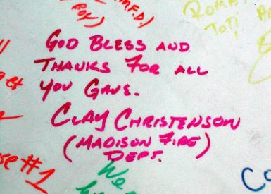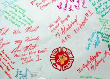 The memorial banner project was scheduled to be at the FD very early. This is usually when most of the Fire Chiefs are available. And the changing of shifts has the most firefighters around. After roll call, everyone gathered around to sign the banner, and talk with us about our journey. By now, the banner had grown even bigger, and the approaching goal was in sight. We took our coffee with us on the road to Chicago IL.