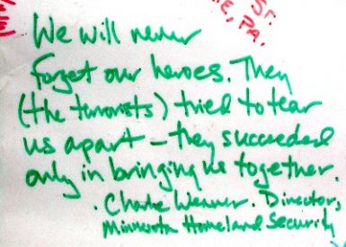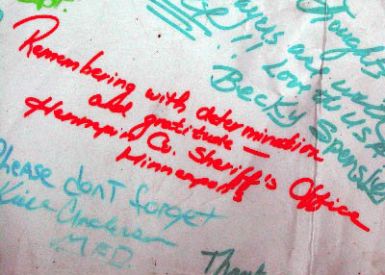 In the morning we were scheduled to bring the banner over to City Hall. We displayed the banner in the main entrance inside the building. There are offices for City Officials, FD, and PD personnel. Many of them came out to speak with us, and sign the banner. A location like this was also very good for the public to come to.