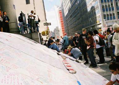 We had two new sections of the banner saved for NY. These were quickly filled in just the first hour. The only thing to do was to start on the back sides. Four more sections were filled throughout the morning. We had stayed until the last name was read aloud.