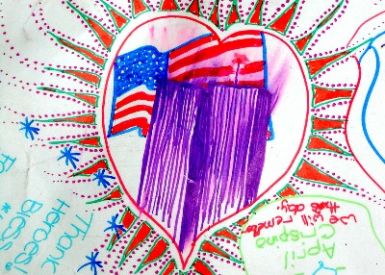 We were up at 3am, to make it to NYC by 6am. We quietly drove through downtown, and made our way to the St Peters Church. There was a parking spot right there waiting for us. The early morning light was just breaking through, and before we did anything with the banner, we walked as near to ground zero as allowed. We used this moment in silence, and to behold all we had accomplished. We new this was going to be a very special day. We laid the banner out on the front steps leading up to the portals of the church. A crowd had already begun to assemble here, as it was as close as anyone could get. In the hour that quickly passed, police bearers were in place, and thousands of people filled the area.