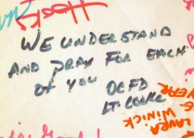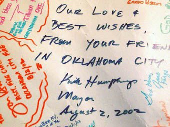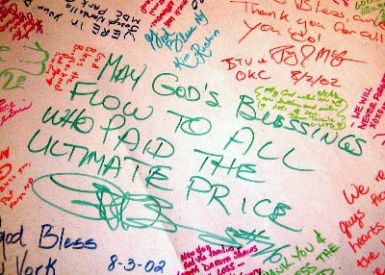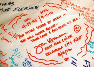 Jons personal assistant Linda, and good friend Fred Mendoza were an additional help with public relations, and organizing presentations of the banner. At the FD, FEMA was there to do a Special Educational Program. It felt honorable, in addition to everything else that happened thus far, to have Mr. Allbaugh sign the banner.