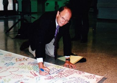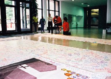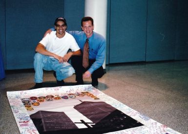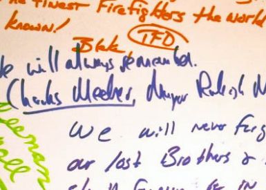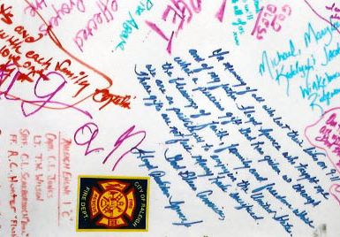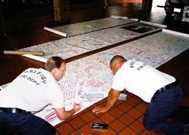 In the morning, I shared the banner with the firefighters during their shift change. They were aware of the banner coming here, and then assisted me in getting it over to the Convention Center, where I was scheduled to be during the afternoon.