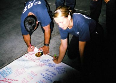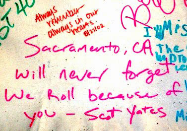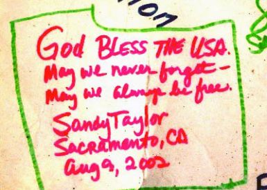 Along the drive that night, we had seen a sign on the highway for a FD. We exited, and discovered it was a Forestry Fire Department. There were only four firefighters there on the night shift who were so happy that we stopped. We were curious to learn how even way out here they were effected by September 11th. We exchanged stories, and gifts. We learned later on the tour that the one girl firefighter made something that was worn by several other FD across America. It really was amazing how close their brotherhood really is, and how far it stretched. We finished the drive overnight to Portland OR.