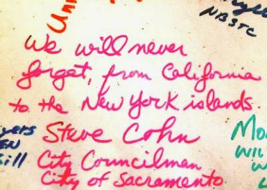 We had arrived an hour past midnight, and not a moment to soon. We were exhausted mentally, and physically. Our thoughts were only on a place to sleep, and immediately. We were scheduled to make a presentation of the banner at City Hall by 9am, and that seemed so very close to now. No advance arrangements were made with the FD to be able to stay with them, and especially coming in at this hour. Paige managed to get us a complimentary room at a hotel. We were very lucky to have this room, which is held for VIP’s coming in during the night. Being so late, the night clerk was sure nobody would be arriving after us, and he wanted to help. There was an event at the convention center, so every hotel was booked.