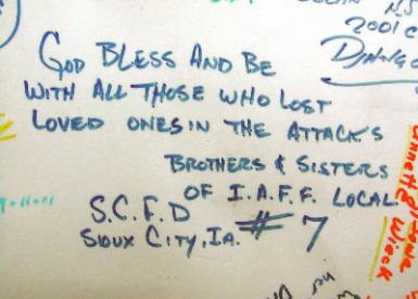 We managed to make it by early evening and found our way to a hotel for the night. We had a scheduled presentation with the banner at the FD. The news media had done a live broadcast with us in the morning, and by midafternoon we had many people come here to sign the banner.