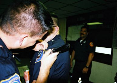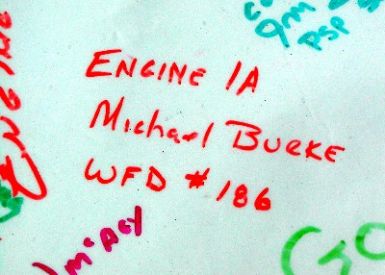 It was a quick drive from Baltimore to get here. We had been in phone contact with the FD on the way. They had been anticipating our arrival, and staying as their guest for the evening. These guys were all very friendly, and went out of their way to make us feel at home. Before we even began to share the banner with them, an alarm call came in, and we were invited to jump in a truck.
